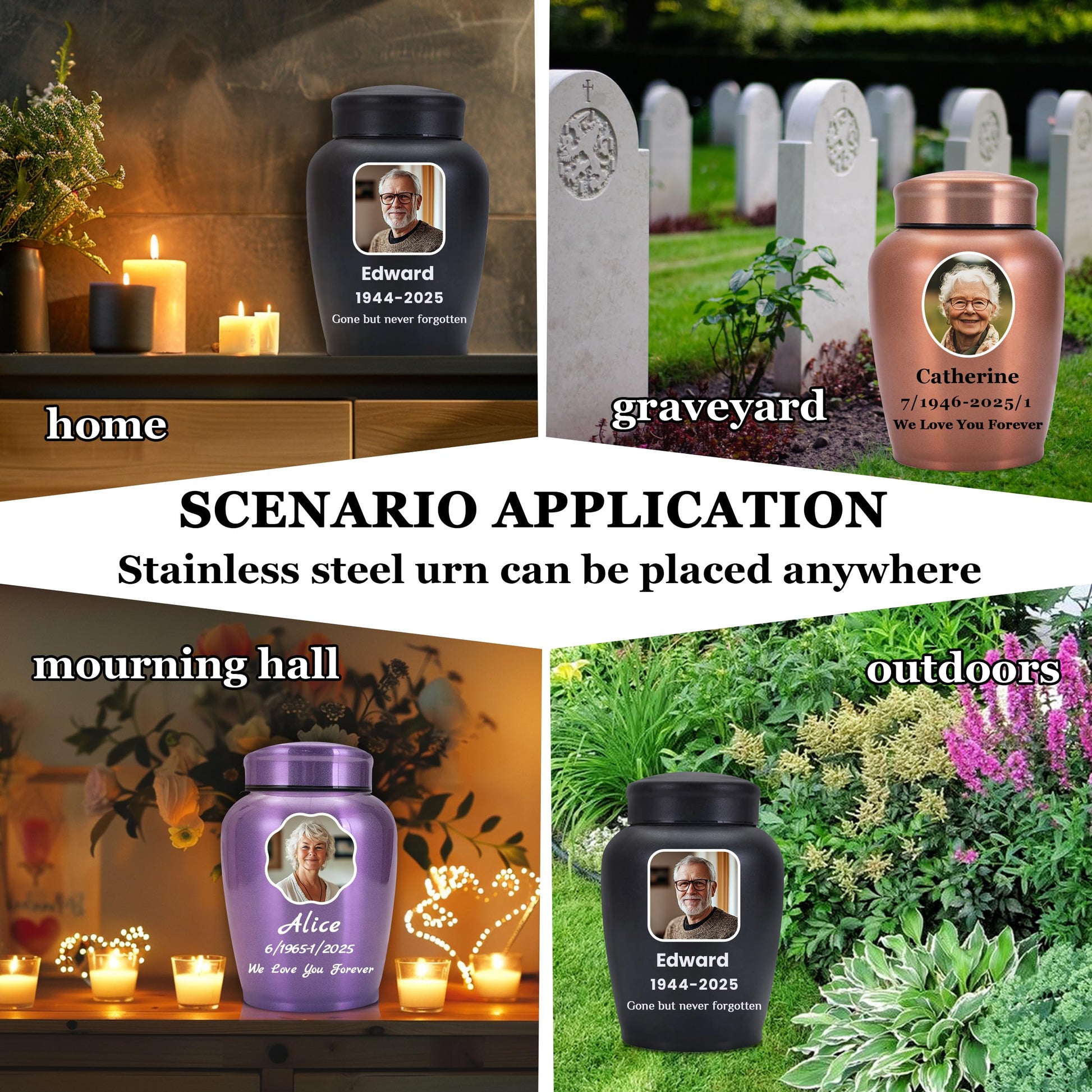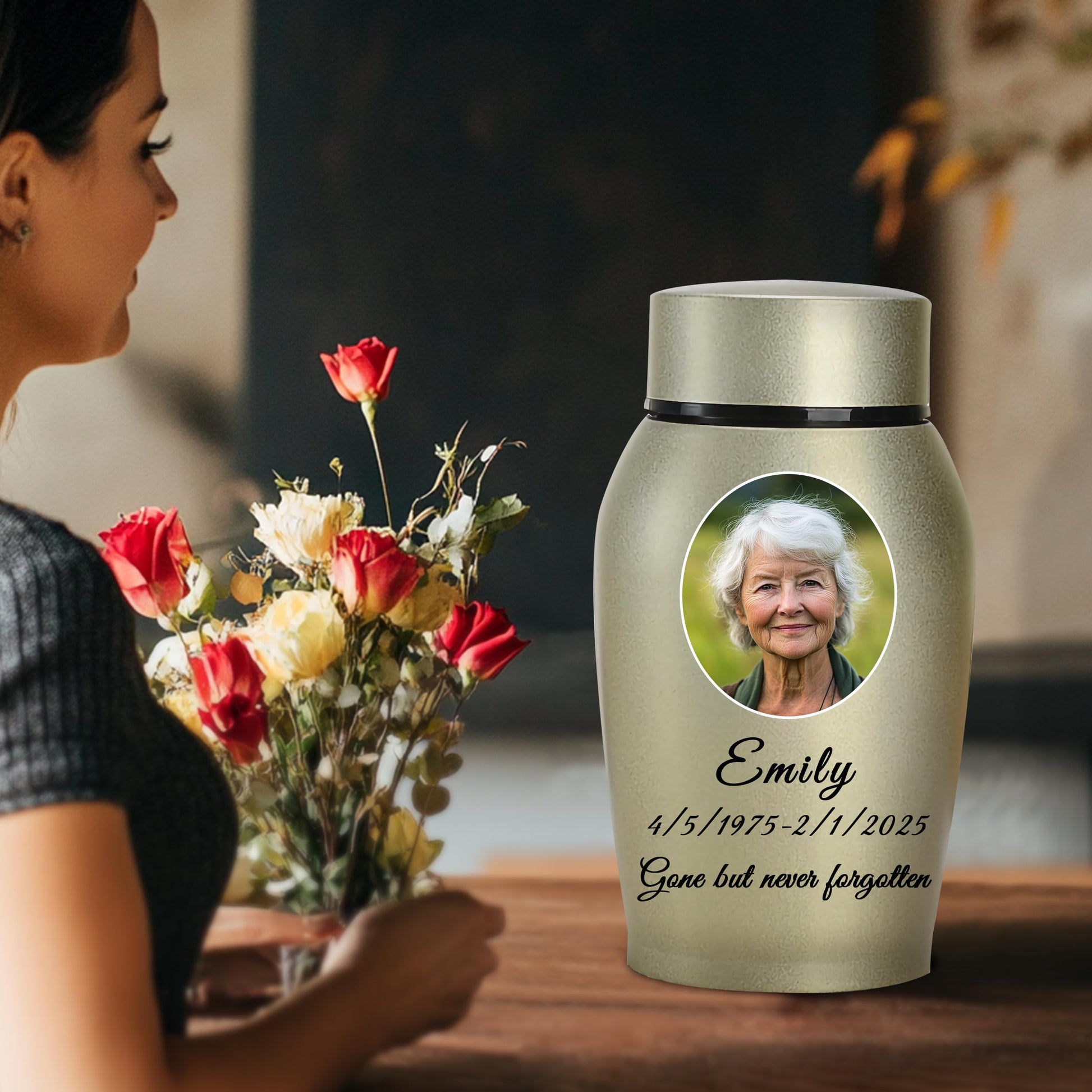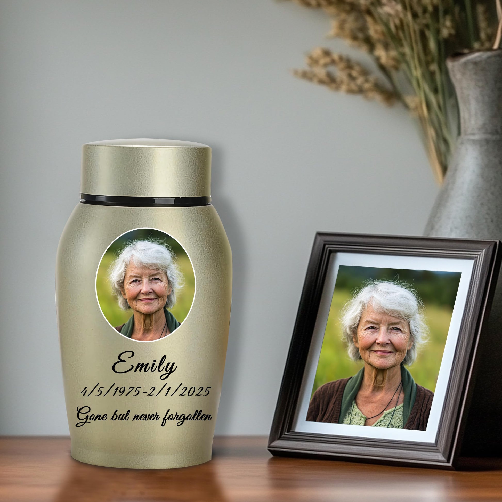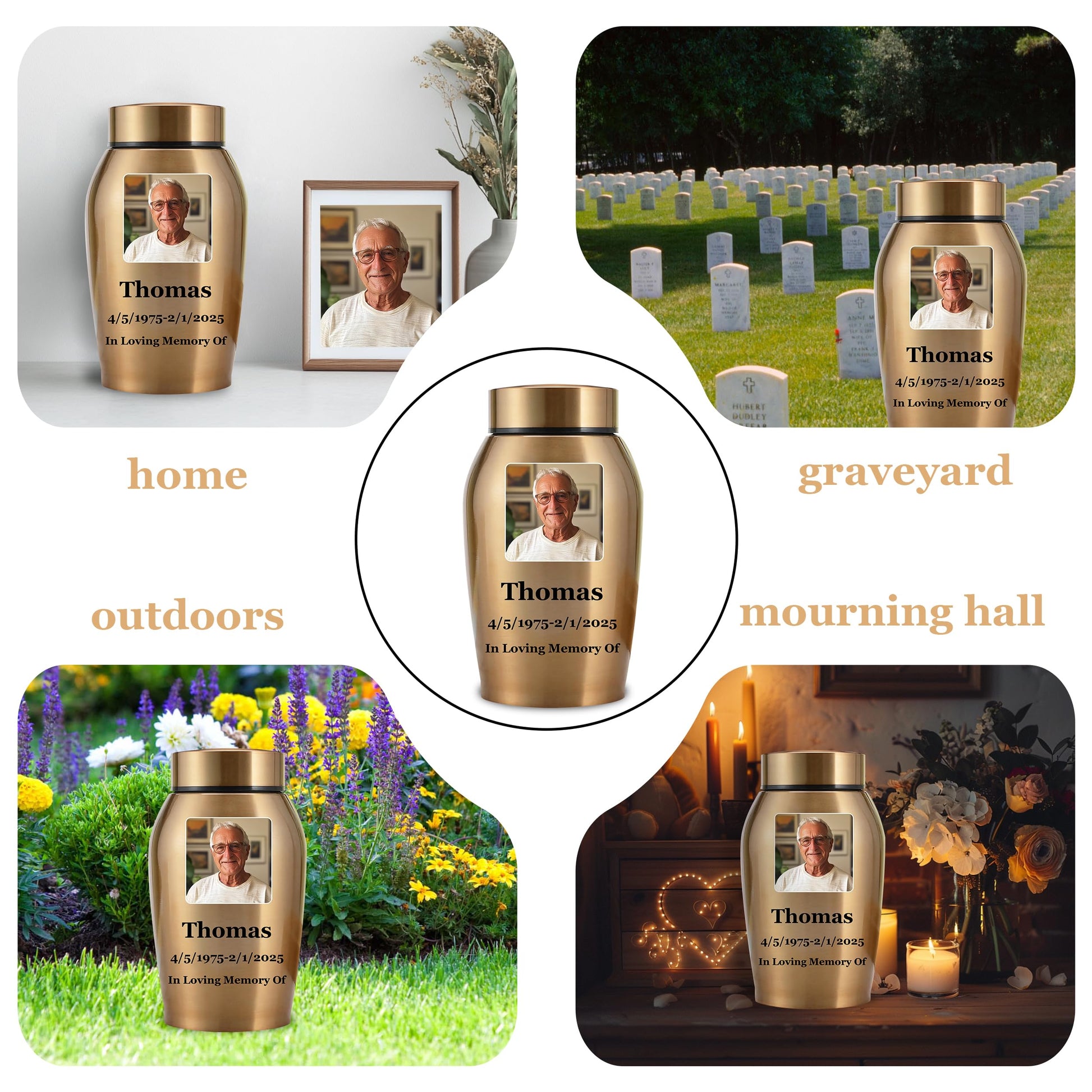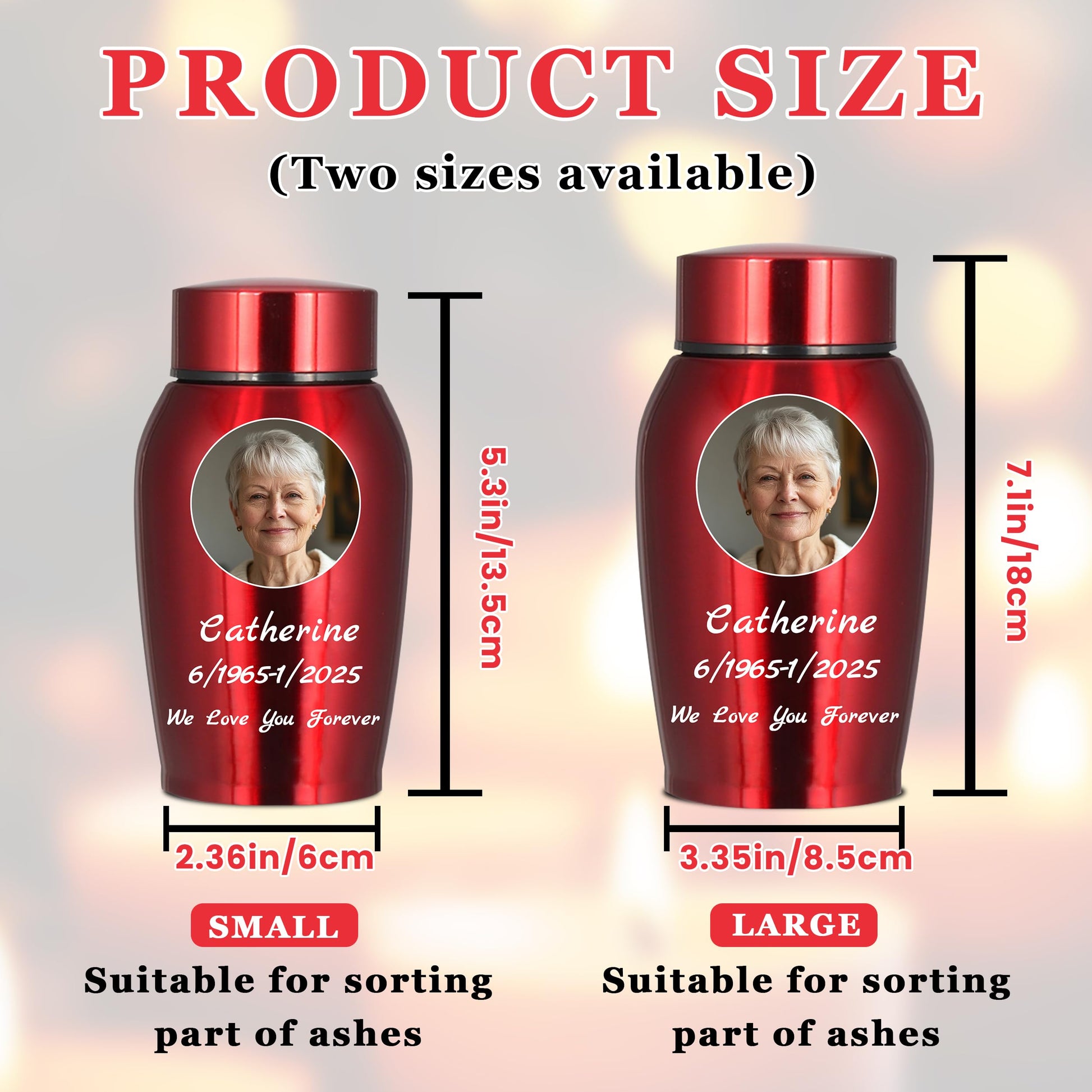 - Customize Now: Please start by selecting your preferred urn color, then click "Customize Now" to choose the size of the urn and the shape of the image. and provide the name, birthdate, and date of passing of your loved person, along with any heartfelt message you'd like to include. Please ensure that the uploaded image is of high quality and that the custom information you provide is accurate, as the urn will be customized based on the details you submit.