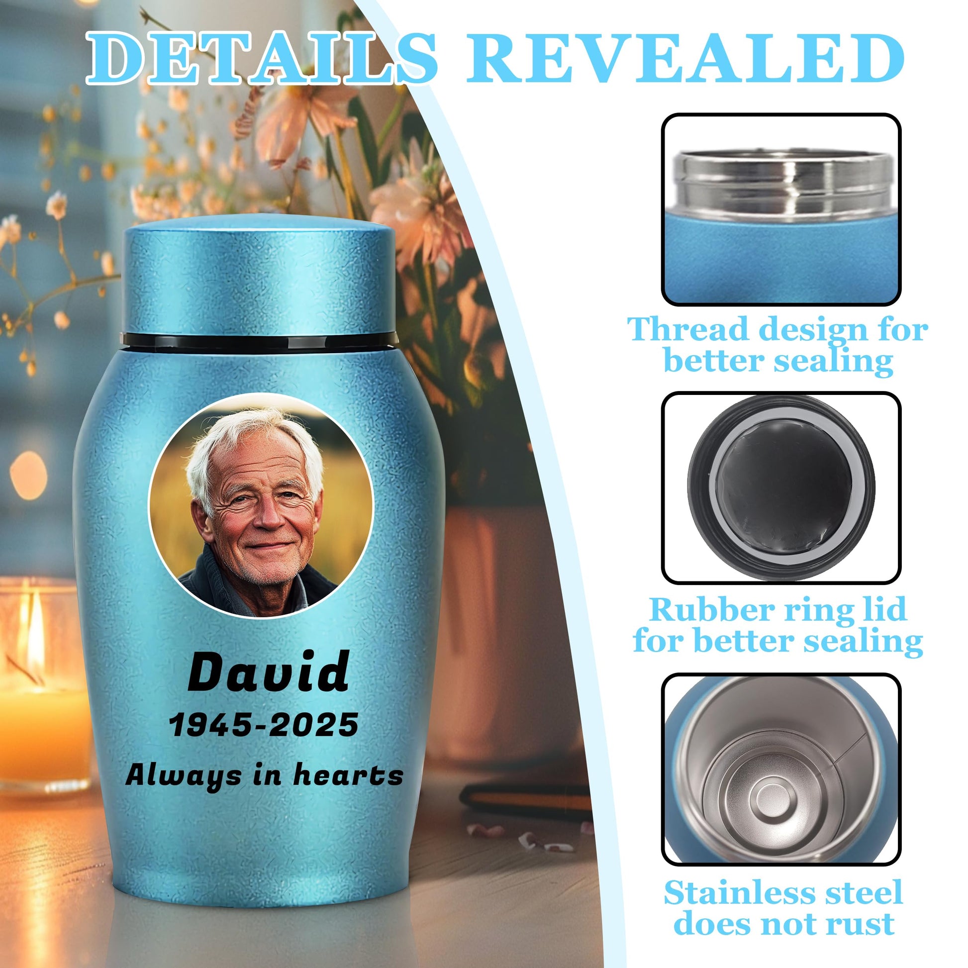 - Custom Urns for Human Ashes: This urn for ashes adult male is made of sturdy stainless steel. It features a sleek. The threaded lid provides a secure seal, offering a dignified and peaceful resting place for your loved person.